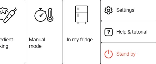 The product is connected.• Find the recipes saved in your notebooks and favourites directly on the robot's screen.