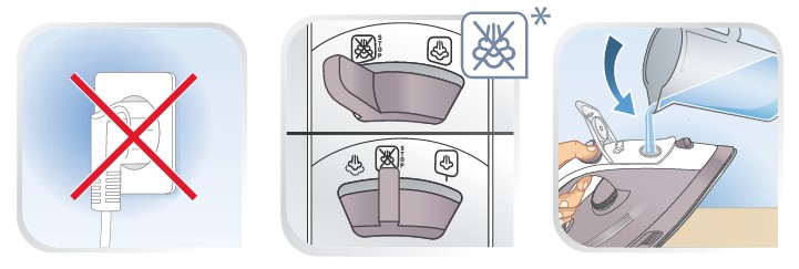 Always set your iron to the 'No Steam' function before you start to fill.